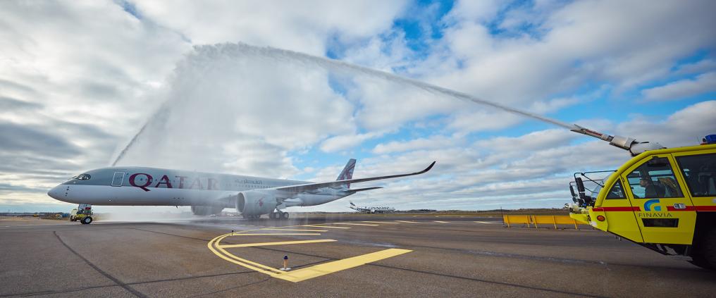 A water salute is also given when a new route is opened or when a new airline starts to operate at Helsinki Airport, as Qatar Airways did last autumn. Thirdly, a water salute is given during the last flight of a retiring captain.