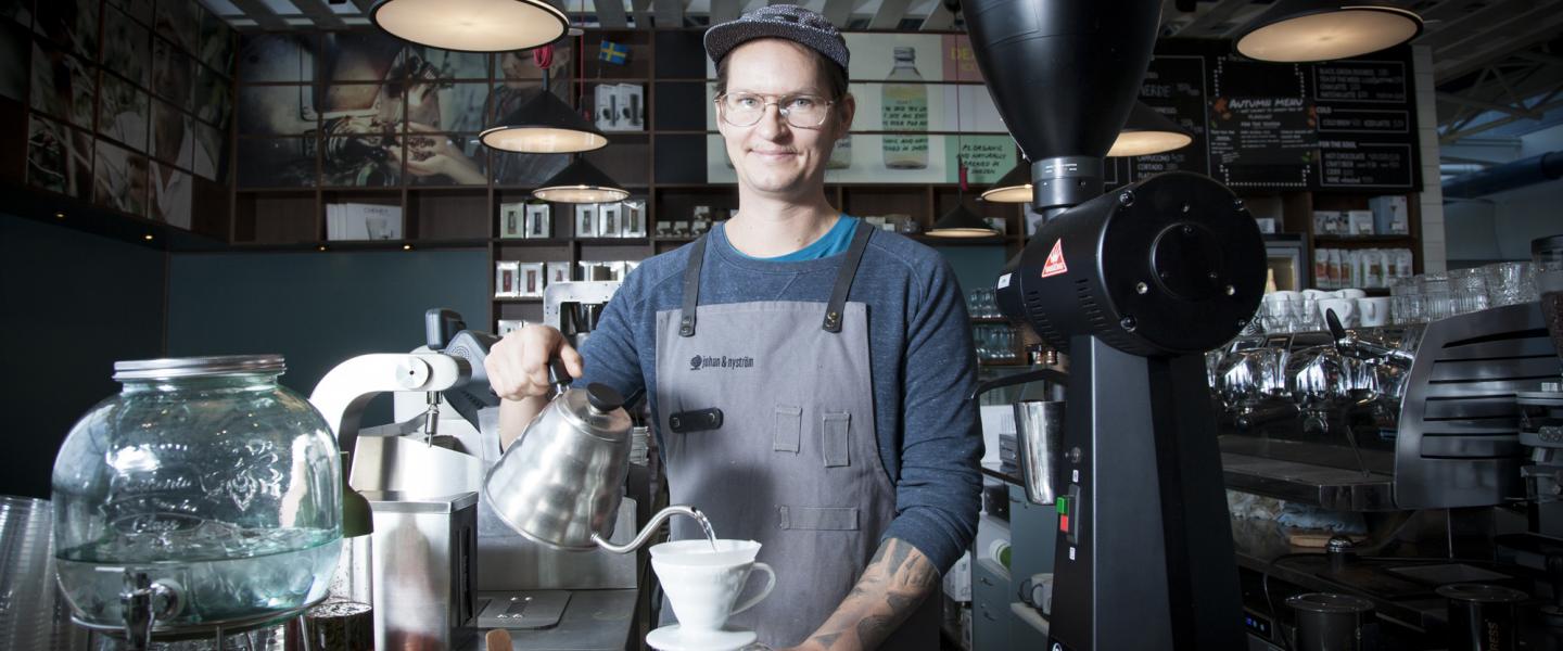 ”I used to work in a regular chain coffee shop. One time I started chatting to a customer about coffee. I told him I wanted to know more about the origins and subtleties of making coffee, to be able to tell clients more than ‘Watch out, it’s hot.’ This customer turned out to be the head of Johan & Nyström Finland. He suggested I apply to work for his company. That’s how I ended up working as a barista at Johan & Nyström in Helsinki Airport.