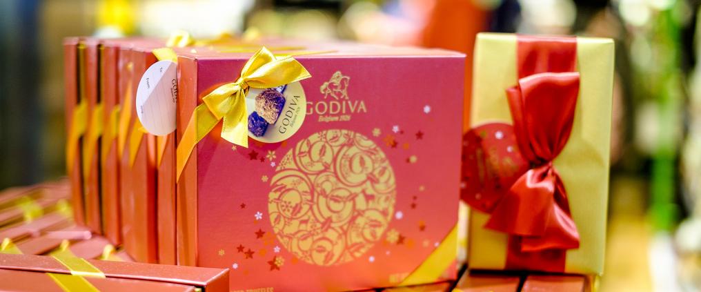 Godivan joulusuklaat ja paljon muuta hyvää löytyy Finfood-liikkeistä porteilla 20 ja 30.