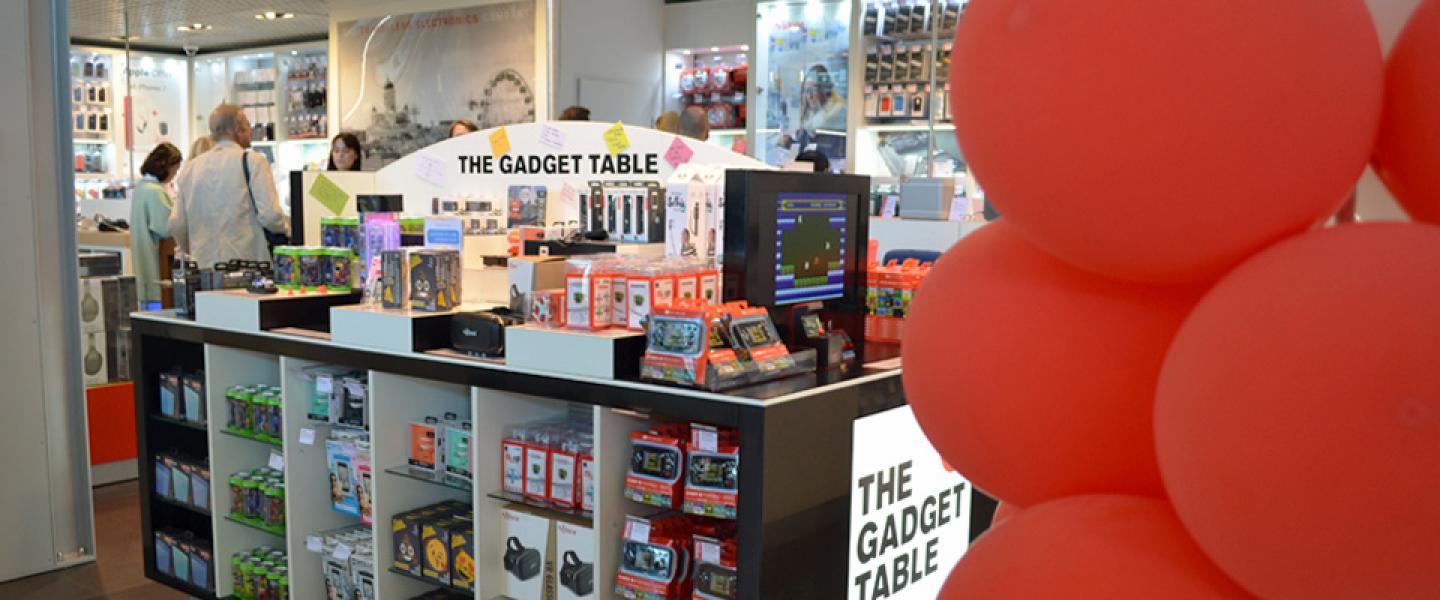 Kaupasta löytyy esimerkiksi kätevä paljon myytyjen tuotteiden Travellers’ Choice –seinä. Erilaisten vimpainten ystäviä kiinnostanee puolestaan erityisesti myymälän Gadget Table.