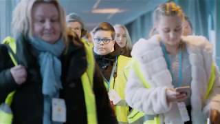 Keltaisiin turvaliiveihin sonnustautuneet testaajat pääsivät kokemaan uuden Aukion arkkitehtuurin ja palvelut ennen muita – sekä antamaan tärkeää palautetta muun muassa uudesta huippumodernista turvatarkastuksesta.