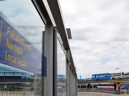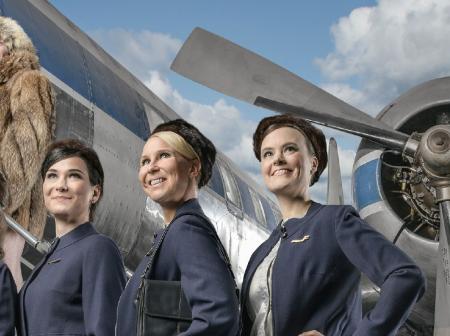 Flygvärdinnornas uniformer blev till en fotoutställning på Helsingfors-Vanda Människor & Luftfart Resa 28.4.2015